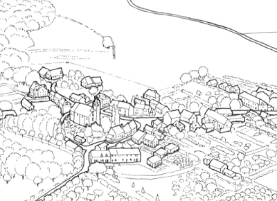 Mon complice Henri Fellner a traduit en dessin les photos du territoire de St Quentin, pour un parcours iconographique que les enfants suivront au cours de l'atelier.