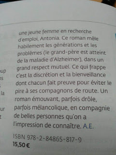 Et voilà ce que j'y trouve :"Séverine Vidal fait résonner avec sensibilité ce personnage avec Un homme qui dort de Perec cité en épigraphe. Les dialogues et les descriptions ciselées transportent avec maîtrise le lecteur d’un bout à l’autre d’une belle aventure littéraire."