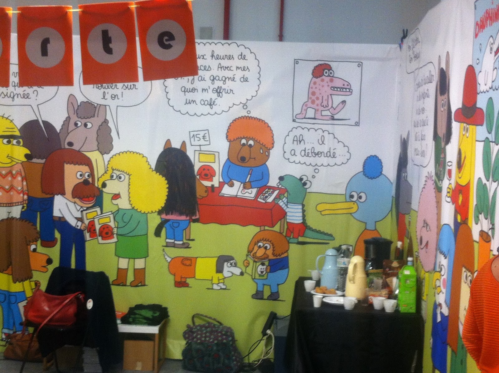 Le joli stand de la Charte. Privés de distribution de marque-pages, on avait les images d'Anouk Ricard pour se consoler !