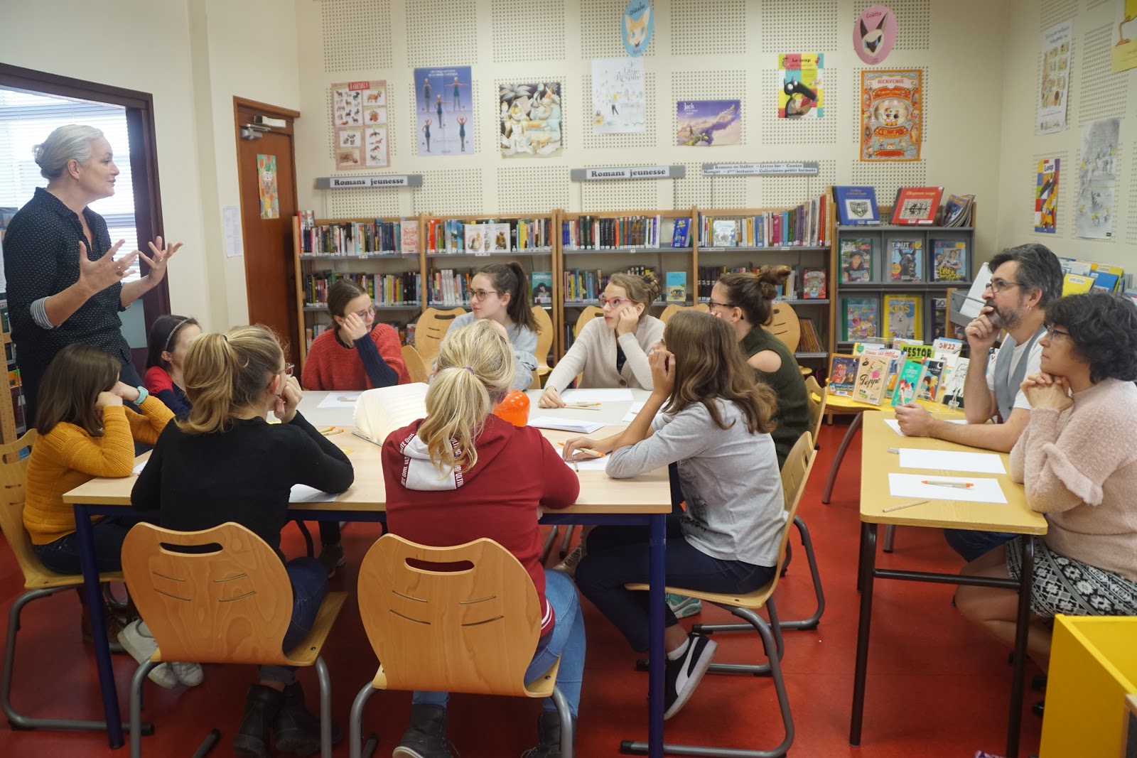 Un atelier d'écriture pour les ados autour de mon album Les bruits chez qui j'habite (ill. Claire Cantais)...