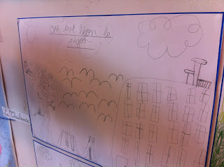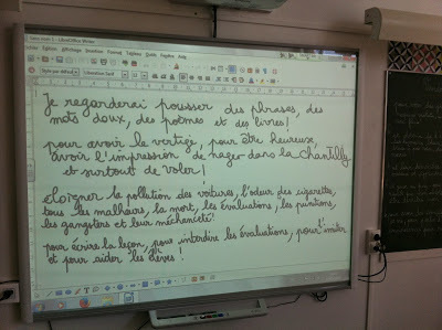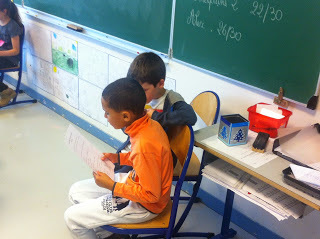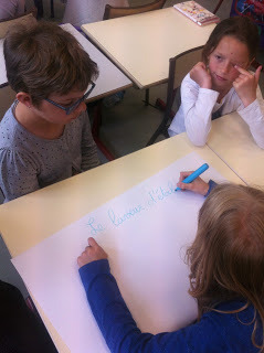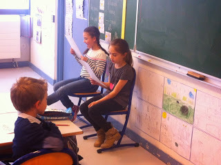 Enfin, avec les CE1 de Ver sur mer, on discute encore, ce n'est pas fini !Ils m'ont fait rire d'entrée avec leur texte de présentation : une sorcière les avaient fait devenir tout petits et ..."Maintenant nous travaillons dans une trousse et notre maîtresse utilise une loupe pour nous dire bonjour et nous compter."