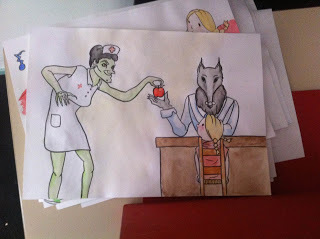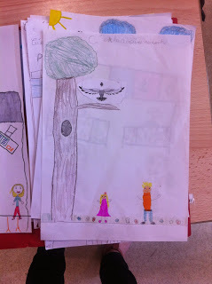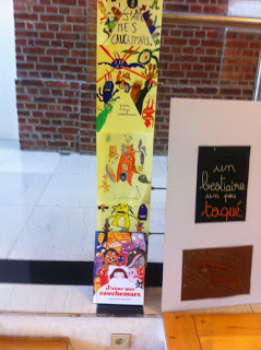 J'intervenais toute cette année à l'école Dominos du Val de Reuil. J'en ai parlé ICI. Chaque classe de maternelle écrivait deux histoires (par dictée à l'adulte), que les cycles 3 de la classe de Gilles ont illustrée, avec l'aide d'Hélène Micou.