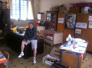Philippe dans son bureau-canapé-cuisine-garde manger-table d'hôtes.