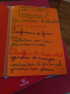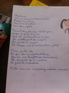 Avec les CP-CE1 de Millas, on a parlé chocolat, ils ont inventé aussi des biographies menteuses (très rigolotes). Et puis certains voulaient écrire un poème coloré, d'autres voulaient finir l'histoire du Zarzouilleur... Et ils l'ont fait !