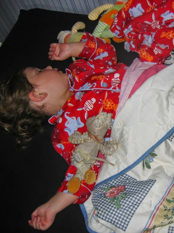 La participation de mon neveu, Elie (hors concours), avec son doudou Iyo (qu'on retrouve facilement à l'odeur) :