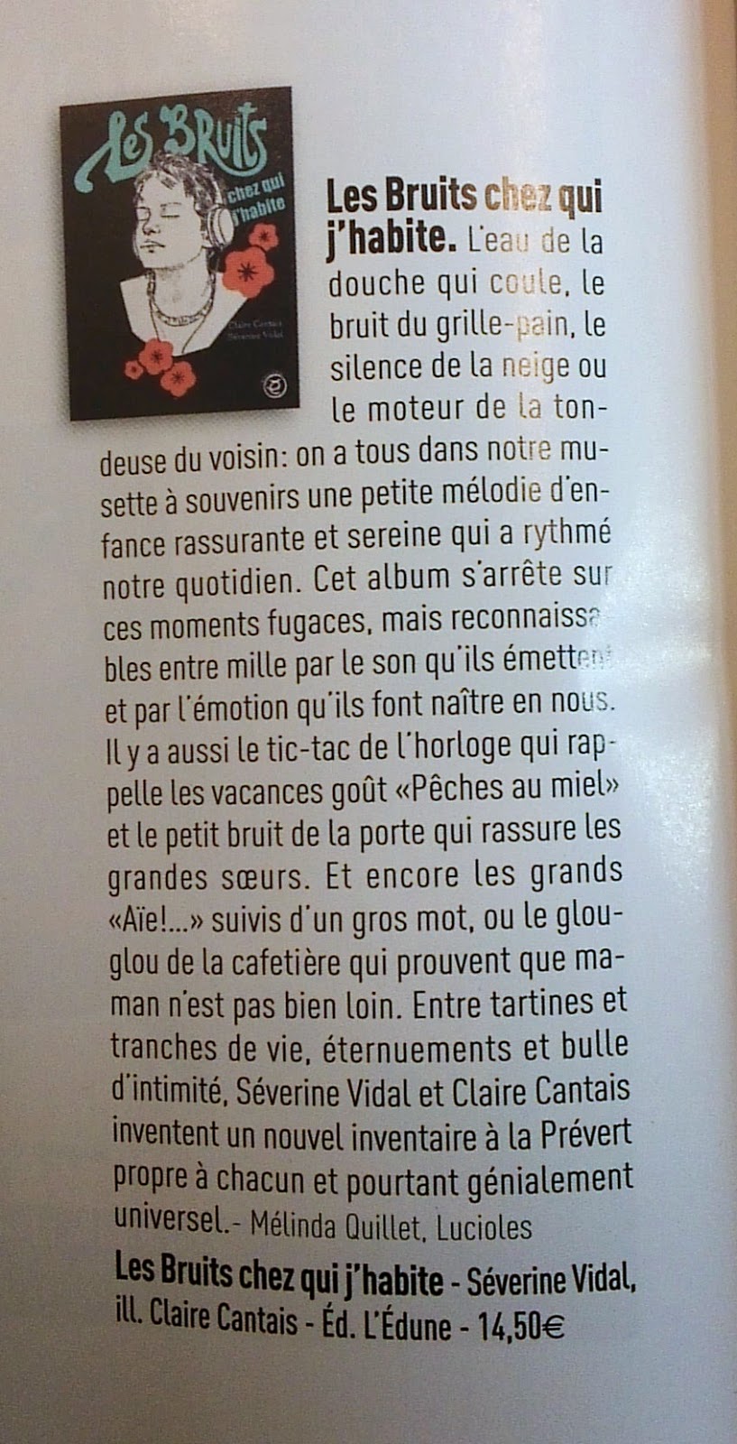Les Bruits chez qui j'habite (L'édune, illu. Claire Cantais)