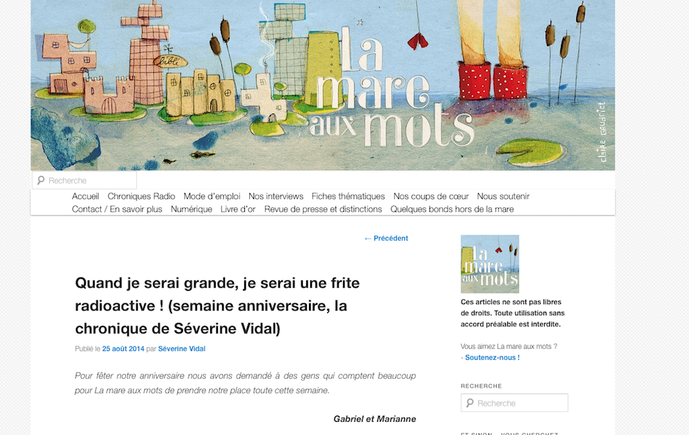 Un blog que j'adore fête ses trois ans : La Mare aux Mots ! Trois ans de chroniques, de dossiers autour de la littérature jeunesse, de débats et de découvertes.