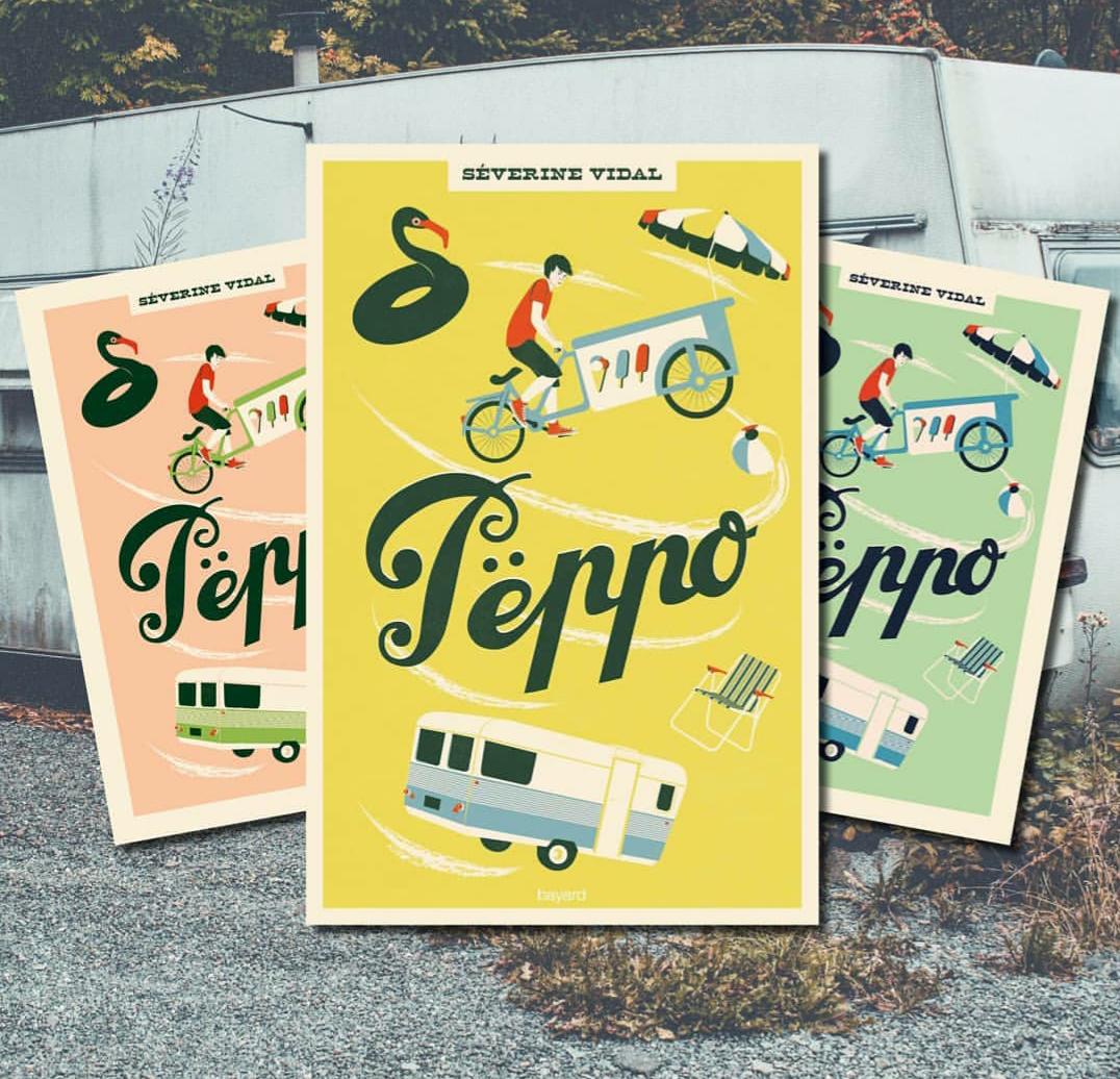 Le roman existe en trois couleurs "vintage" ... comme le camping où se déroule l'histoire. D'ailleurs chez nous, on a assorti la déco de notre caravane-chambre d'amis, à l'occasion de la parution du livre !