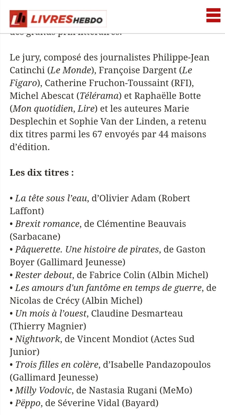 Et le Prix Vendredi, c'est le Goncourt de la littérature jeunesse. C'est pas moi qui le dis, c'est Livres Hebdo.