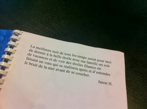Mardi matin, au collège Darras Riaumont de Lievin, j'ai été émue par une créativité hors-pair autour de "La Meilleure nuit de tous les temps" et des Petites marées, ... une bande d'artistes que je remercie vivement pour les questions, les maquettes, les poèmes ... et le magnifique "Journal de Mona" complètement imaginé par une des élèves et lu par elle et ses copines. Merci pour le gros travail de préparation de la documentaliste ! Et pour l'accueil si chaleureux.