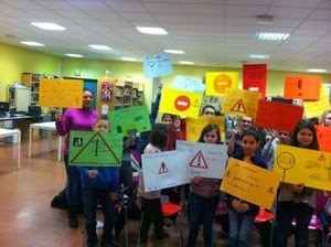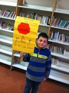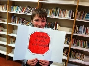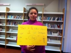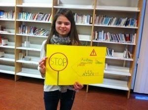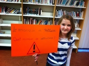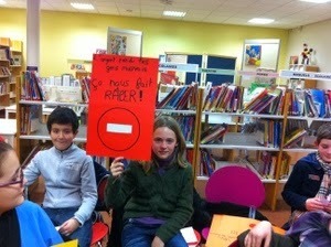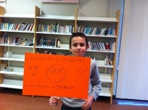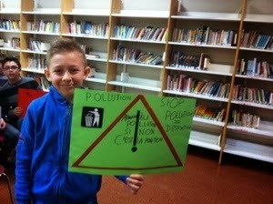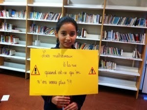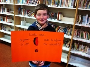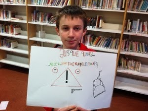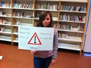 Les 6ème avaient lu le même livre, avaient rédigé des pancartes sur leurs indignations. Ils les avaient cachées. Puis, après m'avoir demandé "Et vous ? Quels sont vos motifs d'indignation ?", ils se sont levés les uns après les autres en brandissant leur pancarte et en les lisant. Grosse émotion. Bravo à tous. J'ai vécu grâce à vous un vrai beau moment où tout prend son sens, où je sais pourquoi j'écris. Pourquoi nous avons écrit, à 7, On n'a rien vu venir.