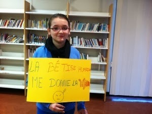 A tous ceux des 5e SEGPA et à Arnaud pour l'accueil, la vivacité, l'humour, la démonstation du breakeur, la poésie, les portraits "à la Prune"(parfois "provoc", hein Rachid ?), les belles questions et la timidité touchante de certains.