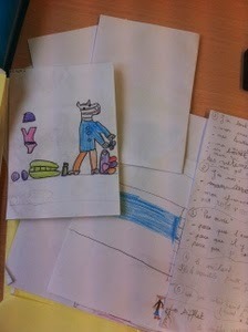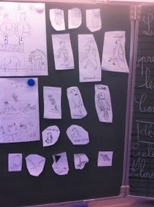 Des rimes de folie dans la classe de CE1 de Mme Desoomer ! Des jeux de mots géniaux chez les CE2 de M. Griotte !(à partir de Mamythologie)Un polar dingue : "Le Club des 3 et l'affaire du Louvre-Boulogne" chez les CM1 de Valérie Delporte. Un autre polar (dont je suis jalouse) : "Le groupe T.A.M., en avant !" dans la classe de CM1 de Mme Lacour.(à partir de notre Tribu)Des contes décalés dans le CP de Mme Blanchard : la vague des mots, les pompiers de volcans, l'infirmière des étoiles et d'autres encore. D'autres contes chez les CE1 de M. Langlet : le promeneur de chiens volants, la créateur d'arc-en-ciel ...(à partir du laboureur)