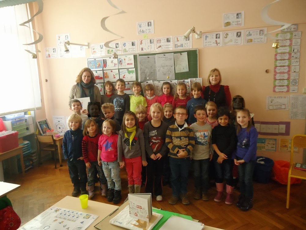 Entre temps, un train de banlieue, du métro, un TGV, Forbach, des sourires, des surprises, de la tarte aux pommes, deux classes très accueillantes à l'école bi-culturelle de Spicheren, deux maîtresses et un maître enthousiastes, un autre Je n'irai pas super drôle créé par les élèves de CP, deux ateliers d'écriture où ça rêve et où ça invente des petits métiers, un papillon-journaliste, un nettoyeur d'océans, un veilleur de lune, et puis de la choucroute, une séance de dédicaces à s'en fouler le poignet droit, des Anton et Lotti distribués comme si j'étais la Mère Noël, un goûter, une cloche rouge à paillettes, un ciel rose, le froid qui pique et le retour tard chez moi.