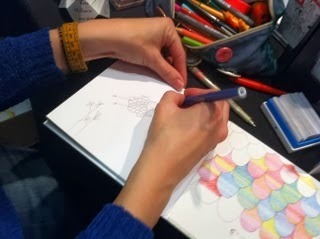 Billie du Bayou se fait dessiner dessus par Ronan Badel sur le stand de l'élan vert.