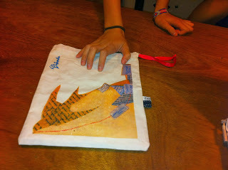 Voici les photos du tirage au sort, avec les mains presqu'innocentes de ma Fantine et le super joli sac imaginé par Isabelle des éditions Philomèle à partir de mon livre La Grande Collection.