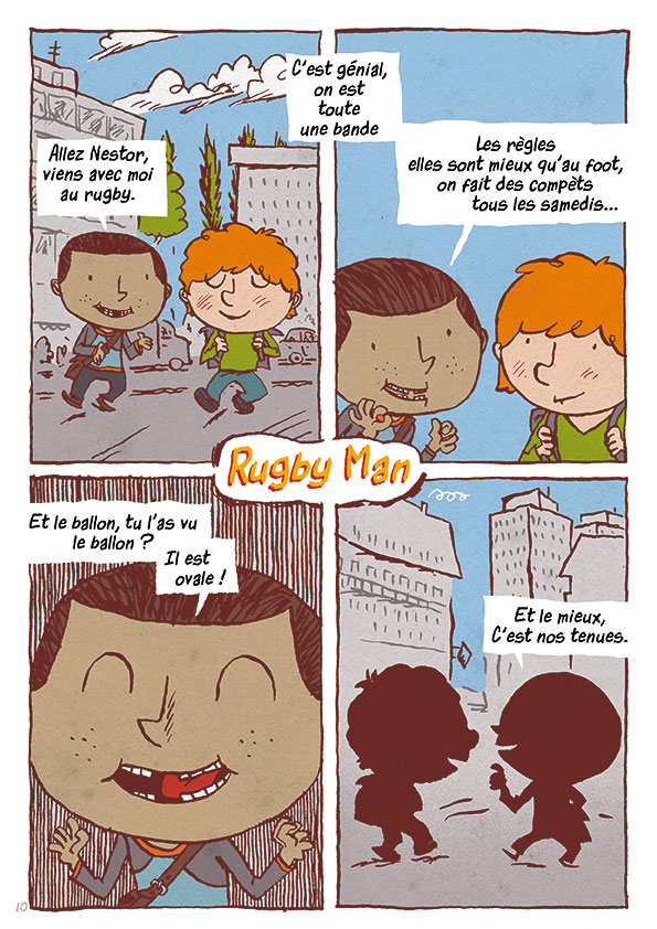 Voilà une planche pour attendre 2014... cette fois Nestor se laisse convaincre par le rugby (mais ça ne durera pas ^^), après avoir testé (plein) d'autres activités ;)