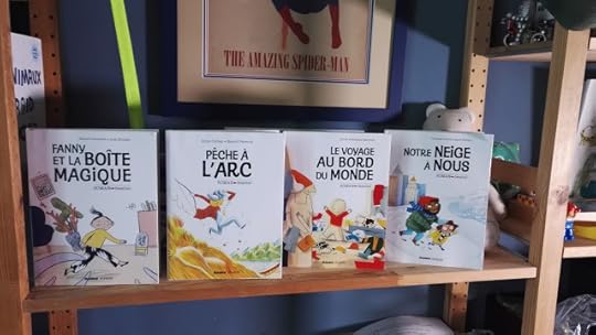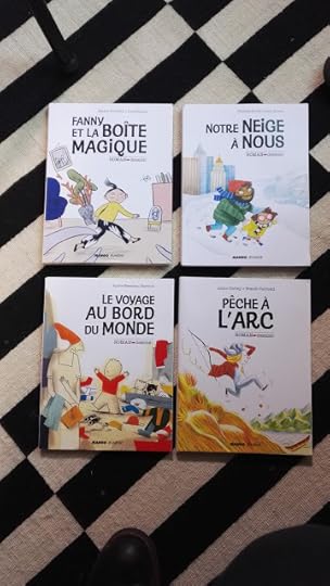 La pêche à l'arc (Anne Cortey / Benoît Perroud), Notre neige à nous (Thomas Scotto / Marie Novion), Le voyage au bord du monde (Sylvie Neeman / Barroux) et Fanny et la boîte magique (Rachel Corenblit / Lisa Blumen).