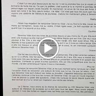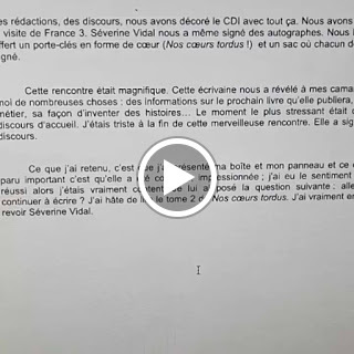 Une équipe de France 3 est venue nous filmer et vous y verrez, inscrite sur leur visage et dans leurs mots, la richesse de cet échange. Un merci intense, à vous tous, grands coeurs en équilibre. A vous, les enfants et à vous tous, enseignant de l'ULIS, profs de français, documentaliste. Vous faites un travail magnifique.