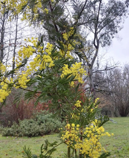 Mon mimosa qui fleurit, là, sous mes yeux, dans notre jardin : émotion.