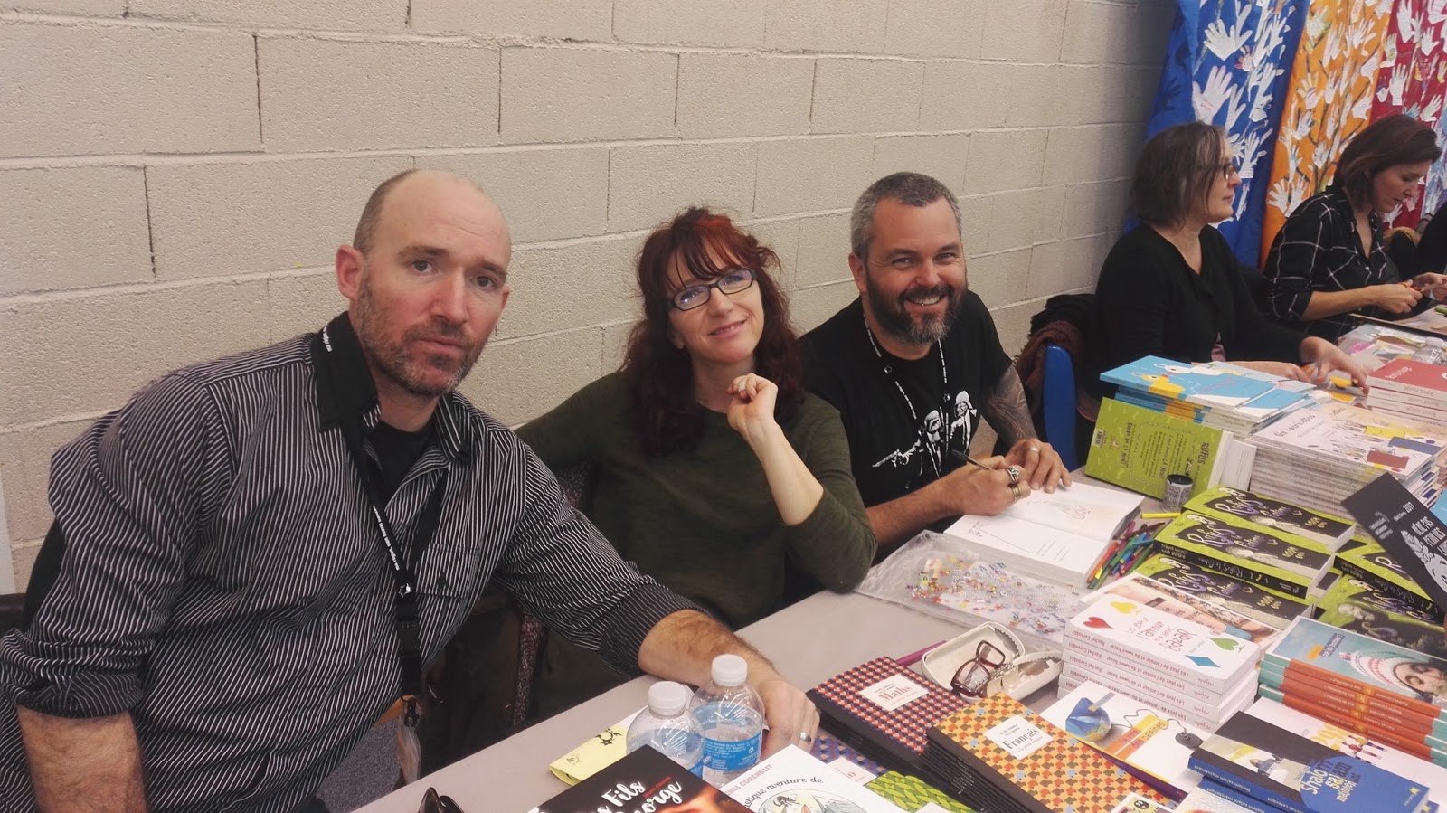 Vous ne verrez pas certains auteurs présents dont je n'ai pas de photo mais qui sont par ici !Et puis il y a d'autres choses qu'on ne peut pas prendre en photo, mon émotion face aux innombrables retours autour de Quelqu'un qu'on aime, les jeunes (et les moins jeunes !) qui me racontent à quel point ils ont aimé mes personnages ("Gary, il me manque pour de vrai !", "C'est le livre que j'ai préféré parmi tous ceux que j'ai lus dans ma vie", "Une merveille, je l'ai offert dix fois"....), à quel point le livre les a touchés. Les rires qui ont pas mal fusé, avec Rachel, Alice et Eric.