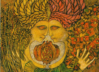 For my graphic, I turned to one of my very favorite artists in the whole world, Meinrad Craighead. Meinrad was raised in a dynamic blend of Catholicism (she was a nun for many years) and awareness of the Great Goddess, and she weaves the living themes of both into her strong, iconic paintings. The one that I particularly liked for my book is called Mother and Daughter. I felt the graphic conjured up all relationships between all women: mother to daughter, of course, but also sister to sister and woman to Goddess.