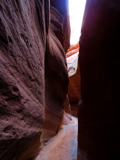 If you're not familiar, it's a very narrow, twisty canyon carved through sandstone by ferocious flash flooding during the Southwest's monsoon season. Yes, we do have a monsoon in the Southwest. We actually have two summers, one dry (May, June) and one wet (July, August, September). During the monsoon months, we can easily get a thunderstorm that drops several inches of rain in minutes.