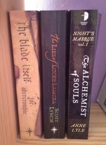 Anyway, the ARC now has pride of place in my SFF bookcase, where it will await the arrival of its swankier (but somehow less cool) brethren, the final print versions, in April!