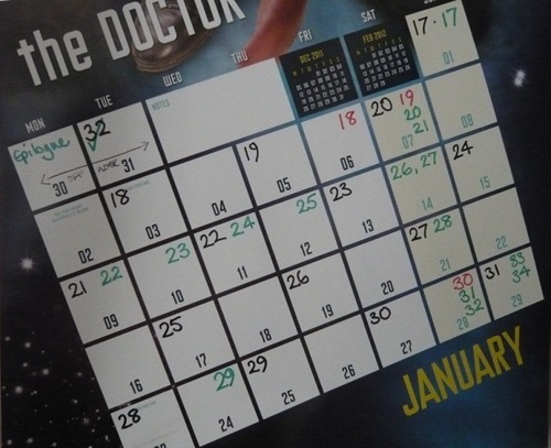 I knew I needed about 32 chapters if the book was to be a sensible length, so I gave myself two days per chapter to do the edit, which seemed reasonable. I then marked every chapter deadline (in black) on my Doctor Who calendar by my desk, and recorded every completion date – red for behind schedule, green for on or ahead. The results speak for themselves: