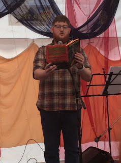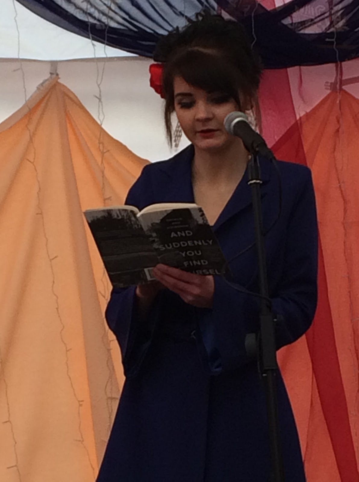 Well that was a Laugharne Weekend! Thanks to the lovely Meinir Min Evans for having us at the beautiful draped The Forecourt Fringe on Saturday and Sunday. Such a pretty stage to perform on. Thanks to my co-host, driver and star poet Natalie Ann Holborow and to my wonderful readers including Oliver James Lomax, Mari Ellis, Rhys Owain Williams, Tyler Keevil, Sion Tomos Owen, Anne Pelleschi and Lee Prosser.