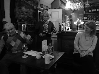 The evening reading was cosy and informal, with us going around the room and each reader standing to do one piece, interspersed with four short sets from myself. There were some wonderful readings including an inventive collaborative piece with 'music'.