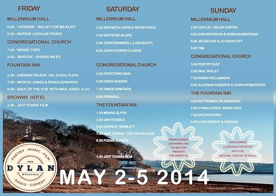 Catch me airing a mix of new and old poems at The Back of the Pub Poetry Club in The Fountain Inn on the Friday Night of the Dylan Poetry Weekend (2-4 May 2014) in Laugharne, along with Mab Jones and pals. My dearest friend Rhian Edwards is on at 7pm that very same night. Loads of other great people doing proper turns on the rest of the bill, and some brilliant theatre bits and bobs too. I will also read a couple of poems at the Bare Fiction event on the 30th of April at Gwdihw in Cardiff.