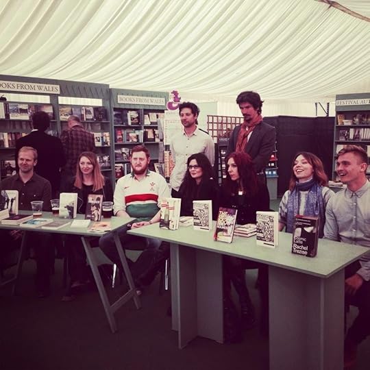 I had a splendid time at the Hay Festival this year. On my first trip up we were celebrating Parthian's 21st birthday with a cabaret style evening of readings, mini q&a sessions and an amazing birthday cake made by one of the fab Hay crew. Rich and I hosted and evening that featured readings from Tyler Keevil, Rachel Trezise, Sion Tomos Owen, Jemma L. King, Carly Holmes, Holly Muller, Dan Tyte, and Joao Morais, and an interview with Rarebit's illustrator John Abell. Here are a few photos...