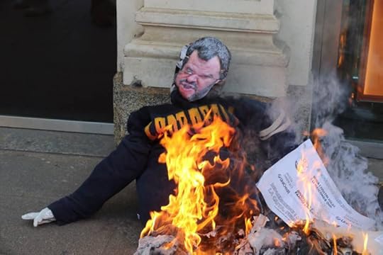 Il centro di Milano è stato preso d'assalto, ancora una volta, dagli studenti di sinistra che, a sostegno delle proteste in Francia, hanno indossato i gilet gialli (video - gallery). Ma la manifestazione contro il governo gialloverde si è trasformata, per l'ennesima volta, un attacco ferocissimo contro Matteo Salvini e il Carroccio. Un fantoccio con il volto del vicepremier leghista è stato, infatti, dato alle fiamme davanti alla sede di Unicredit di piazza Cinque Giornate (video - gallery). Sulla felpa del pupazzo si leggeva la scritta "Ladropoli". Sul marciapiede altri esagitati hanno scritto con la vernice Lega Ladrona.