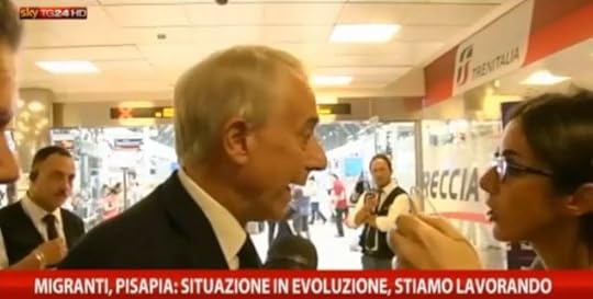 Immigrati, Pisapia alla giornalista: "Li ospita lei a Sky?"Farsa Pisapia: immigrati portati fuori da Centrale