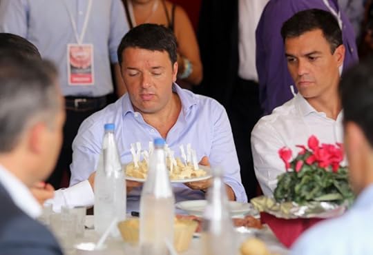 Manuel Valls, Pedro Sanchez, Hakim Post e Diederik Samson, attovagliati insieme ai ministri Madia, Pinotti e Mogherini, al sottosegretario Sandro Gozi, al vicesegretario del Pd Debora Serracchiani e al presidente del partito Matteo Orfini, hanno aperto le danze con un antipasto di salumi: pancetta, crudo 24 mesi, parmigiano reggiano e ciccioli. Sono, quindi, passati ai tortellini in brodo. E hanno concluso con una grigliata mista. Il tutto innaffiato dal vino rosso locale. Insomma, un menu che più emiliano non si può. E, mentre i volontari dei circoli piddì che gestiscono i ristoranti della Festa dell'Unità servivano un piatto dietro l'altro, Renzi giù a farsi bello del 40,8% incassato alle europee. Una percentuale che lo fa sentire onnipotente, tanto da promettere di cambiare tutto. La macchina pubblica, le politiche migratorie, la scuola, la politica, l'Italia intera. E l'Europa, pure. "Siamo il partito più votato in Europa - ha detto - un partito che rappresenta una speranza in Europa dopo che gli italiani ci hanno chiesto di rscrivere la storia e una pagina di futuro di questo Paese. O l’Italia la cambiamo noi o non lo fa nessuno".