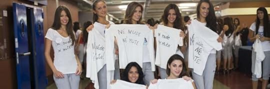 Le più belle d'Italia contro Laura Boldrini, la più accanita femminista d'Italia che contro il gentil sesso ha intrapreso una vera e propria crociata. A Jesolo le 186 finaliste di Miss Italia si sono lasciate fotografare con indosso una maglietta bianca dalla scritta, rossa e stilizzata, "Né nude né mute". Bionde, more, bionde, tutte bellissime e dagli occhi luccicanti che sogghignano alla presidente della Camera che, dopo settimane di anatemi, reprimende e vaneggiamenti, è costretta al silenzio. Perché la foto di gruppo scattata oggi chiarisce una volta per tutte che rientra nei sacrosanti diritti delle donne andare in televisione con abiti sexy e succinti e partecipare a una gara in cui si viene giudicate unicamente per le proprie curve.