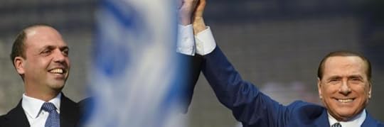 Silvio Berlusconi e il segretario del Pdl Angelino Alfano in piazza del Popolo