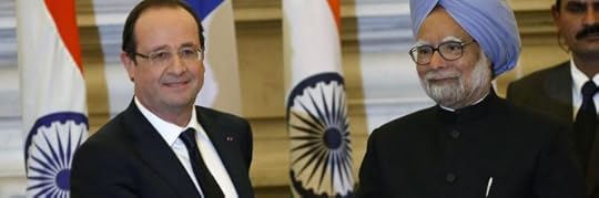 Il presidente francese Francois Hollande con il primo ministro indiano Manmohan Singh