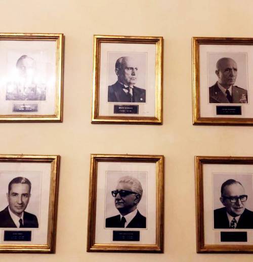Per i 90 anni di Palazzo Piacentini esposti i ritratti di tutti i ministri dello Sviluppo economico. C'�� anche quello di Mussolini. La sinistra all'attacco. Ma c'�� anche a Palazzo Chigi