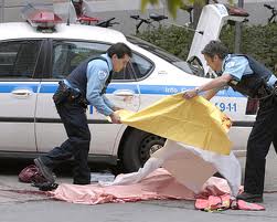 Orangeville ON, September 13th: Police investigate a murder-suicide that left a mother of two and her estranged husband dead. Witnesses say 39-year-old Heidi Ferguson, shot in the chest, sought help at a neighbour's. As she lay dying, Ferguson reportedly cried, "I've been shot by my husband ... please help me." An avid hunter and gun collector, Hugh Ferguson turned the gun on himself after a standoff with police.