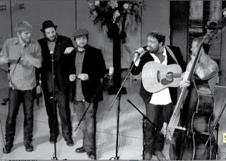 But the approbation wasn't wholly (holy?) unanimous—in fact, part way through the inspired first song of the rousing first act—Adam Stotland and his J-men (my term, his musical friends being Jarrod Atkinson, Joe Grass, Jason Rosenblatt, and Joshua Zubot), the first song being "Gimme That Old Time Religion" —the older lady sitting beside me tapped my shoulder and crooked her finger at me. It was dark and I was pretty sure I didn't know her; I expected her to tell me how great the group was. Instead, I nearly plotzed when she said, in her Central European brogue, "Vut is dis, country music? Crazy! Dis is crazy, I tell you!"