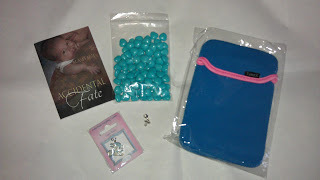It includes a pack of blue chocolate hearts, a blue bear button, a blue neoprene sock for your eReader, a pacifier charm and a limited edition Accidental Fate print. Only ten of these prints will ever be made.