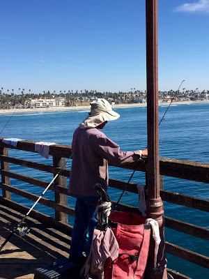 We also spent some time on a pier at Oceanside, and to see the locals fishing was fun. They were actually catching some silver fish about ten inches long. They had a long haul to get them up from the water to the pier, though. I don't know how successful they would have been with a really big catch!