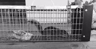 I baited the trap again, leaving it in the same location. This morning the trap was sprung, the bait gone, and the cage empty.