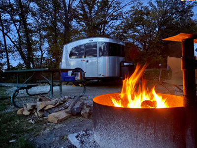Ours were the only tracks on the land, the animals we shared the land with bedded down. No squirrels chattered at us, hiding behind the gray, shaggy bark of hickory trees. No ground hogs lumbered across the gravel to the safety of brush across the drive. We had evidence in our Airstream Basecamp travel trailer that a mouse had moved in, and Sandy, while sipping her morning tea, had even seen the little critter moving around behind a smoked plastic cabinet door in the kitchen area. It was a quiet morning, though, and would be a quiet day, the insulating blanket of snow absorbing and muffling sound until it slowly melted as the morning advanced to afternoon.