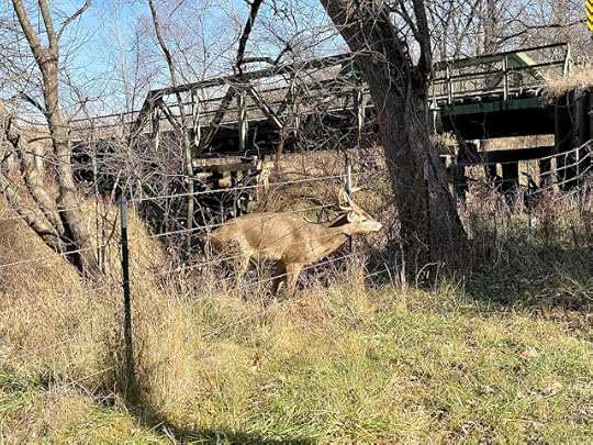 Fall had arrived and deer had begun moving more, mating season and hunting season causing a stir, and that's the time when our neighborhood buck got himself into a bit of trouble. I'd been down at our bottom land along the creek with our tree guy, working on a plan to both clean up the creek of deadfall and to determine the run of a barbed wire fence to create a north pasture area. We walked the creek and checked out the places where fence crossed the creek, the weakest spots and most likely places for cattle to breach the fence. We made our plan, and I walked the man up the hill to his truck.
