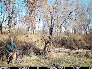 I back away and considered what to do. Deciding first to talk to my neighbor who I knew was a hunter, I jumped into my UTV and jammed to his house, following the gravel road across the bridge. He wasn't home, though. Next I tried to call the local state Department of Natural Resources but received no reply. Deciding that the sheriff's office was my last resort, I called, and the dispatcher took my information but wasn't too enthused. Texting a message and photo to my wife, she contacted our neighbor--yes, the one who had been so negative to me the first time we met--and then texted me back that our neighbor was on his way, a quick message considering that the communication trail had been from me to my wife to the neighboring farmer's wife to the farmer himself. No direct link to Mr. Curmudgeon.