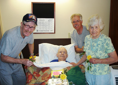 It was my father's birthday, and we wondered where the caregivers had parked his wheelchair--in his room, the hallway, or in the dining facility. We found his occupational therapist tucking him back into bed, sheet and blanket up to his chin. Working popping a balloon back and forth had worn Dad out.
