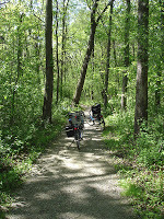 We continued on 22nd St. to the Cedar Creek entrance to Jefferson County Park, where we rode the trails to the W. Jackson exit at Oakwood Nursery. We met a couple of mountain bikers riding the trails, and they said we were "gutsy" riding the trails with our recumbents. I replied that we just had to go slowly, kind of like driving the Baja 500 in a Buick.